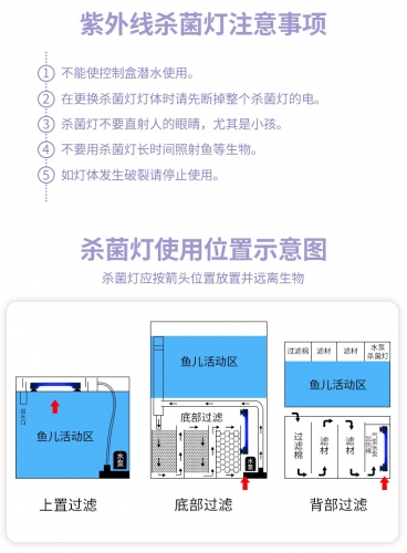 殺滅有害細菌、病毒及藻類,有效淨化控制水質穩定,還可以使用APP遠端控制定時或開關,護眼遮罩可以保護眼睛免受傷害。